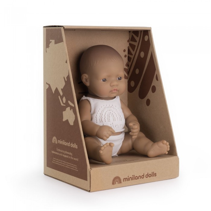 Классическая очаровательная кукла Miniland изготовлена из мягкого, эластичного гибкого винила.