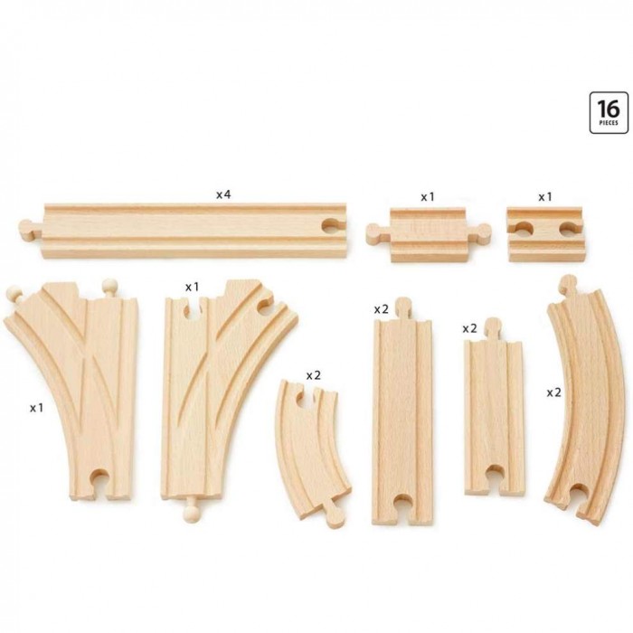 В наборе: 16 элементов железной дороги.
