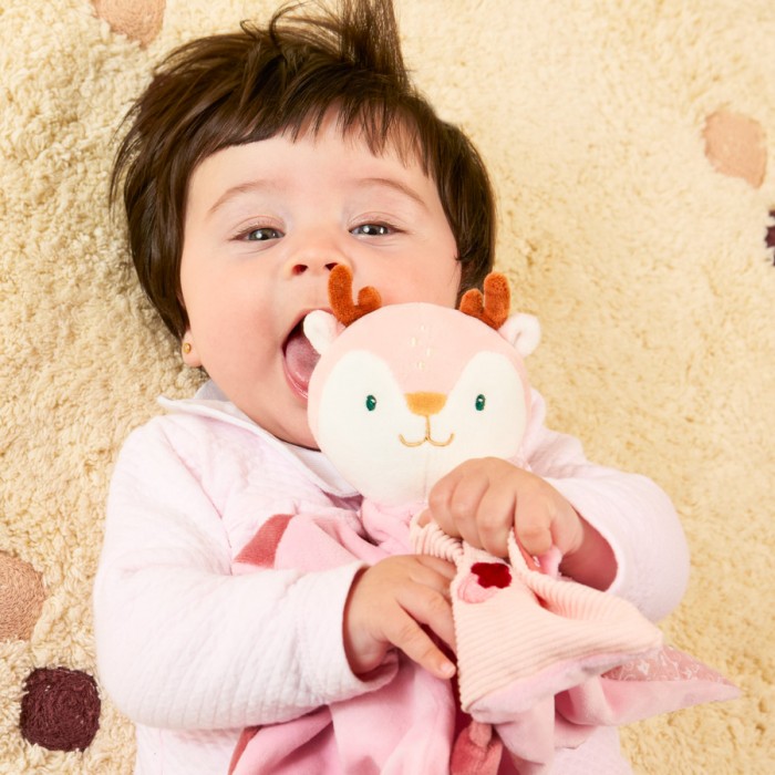Мягкий комфортер в форме оленёнка дарит ребёнку возможность прижимать его к себе, держать рядом и засыпать вместе. Лёгкий, приятный на ощупь и безопасный для детей с рождения. Подходит для сна дома, прогулок и поездок: его легко брать с собой, он быстро становится любимой «игрушкой-помощником» для спокойного сна. На концах комфортера расположены два небольших узелка-«хвостика», к ним удобно крепить пустышку.