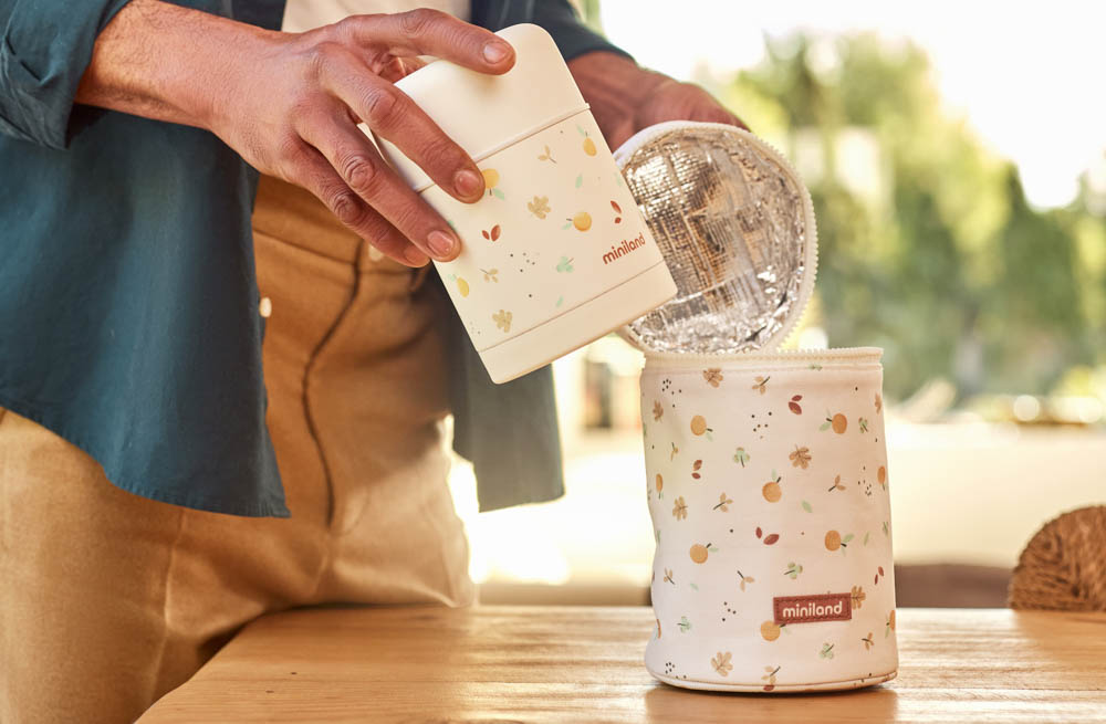 Стильная и удобная термосумка для бутылочек и термосов объёмом до 700 мл. Помогает дольше сохранять температуру детского питания или напитков во время прогулок,поездок и путешествий. Внутри термосумки – изотермический фольгированный слой, который защищает содержимое от холода и жары, а прочный внешний материал предохраняет бутылочку или термос от ударов и царапин.
