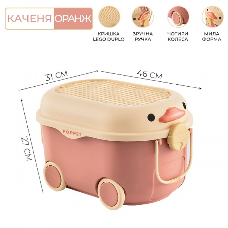 Многофункциональный ящик для хранения игрушек POPPET "Утенок Оранж" на колесах, средний- Ваш незаменимый помощник в мире детского порядка.