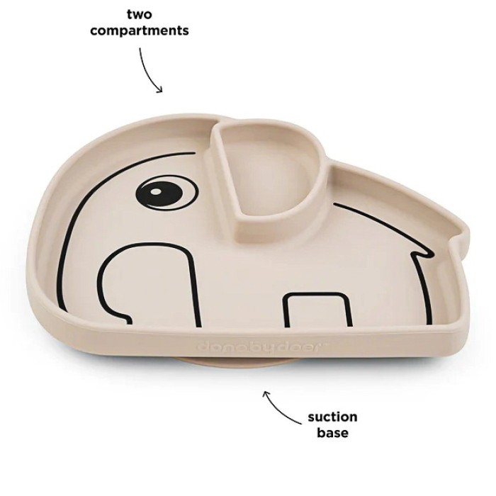 Силіконова тарілка Done by Deer Stick&Stay Elphee у пісочному кольорі — зручний дитячий посуд із присоскою для перших самостійних прийомів їжі. Форма слоника Elphee робить процес харчування цікавішим та допомагає малюку швидше навчитися їсти самостійно.