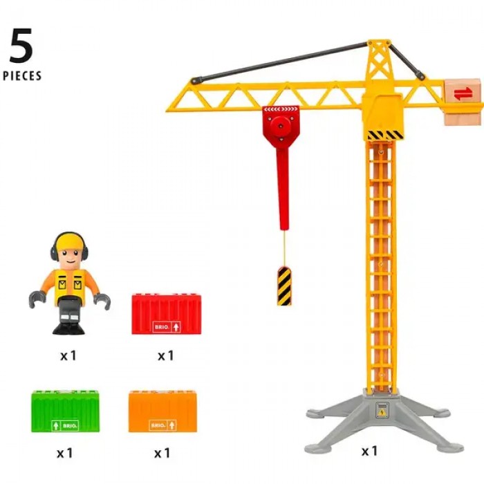 Кран повністю сумісний із системою BRIO World та легко інтегрується в залізницю й міський макет.