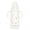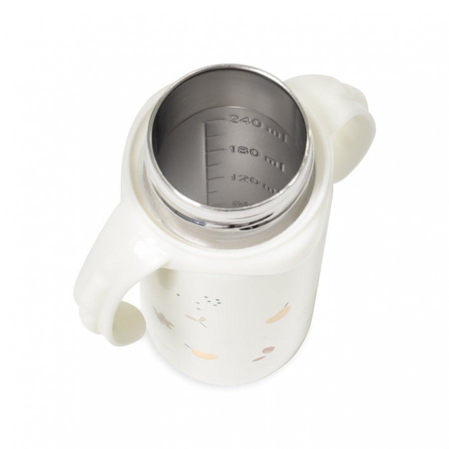 Ручки з боків дозволяють малюкові зручно тримати пляшечку, не впустивши її. Також дуже зручним є те, що ручки на термопоїльник знімні. Якісна кришка запобігає протіканню рідини. Завдяки спеціальній захисній системі соска на термобутилочці завжди залишатиметься чистою та безпечною для використання. Крім того, кришка є додатковим захистом від розливів при транспортуванні.