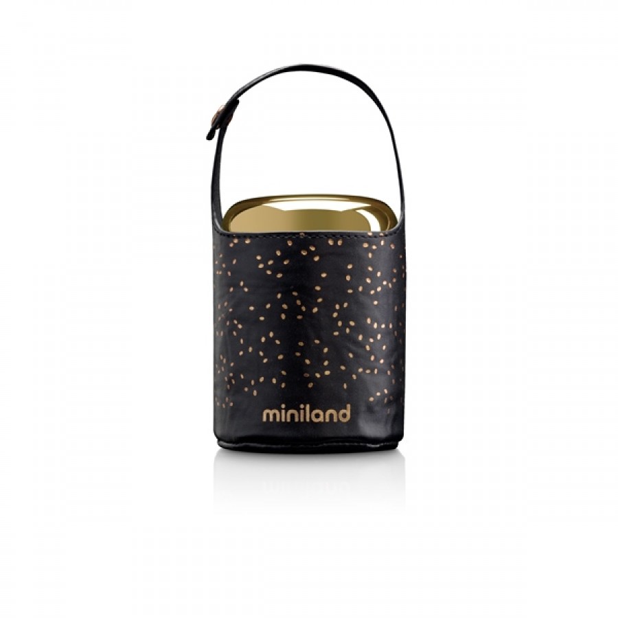 Термос Miniland з колекції Deluxe підходить для будь-якого виду їжі, будь то каша, суп або пюре і володіє високою тепловою стійкістю і ефективністю завдяки подвійним сталевим стінкам, ексклюзивному алюмінієвому шару і вакуумній камері. Завдяки цьому термос підтримує температуру холодних і гарячих страв більше 12 годин. Крім того, в комплект до термосу додається елегантна термосумка, яка забезпечує додатковий шар ізоляції і тим самим підтримує температуру вмісту в термосі ще довше. Термосумка має ручку, яка закривається на кнопку, що дозволяє з легкістю повісити її на коляску.