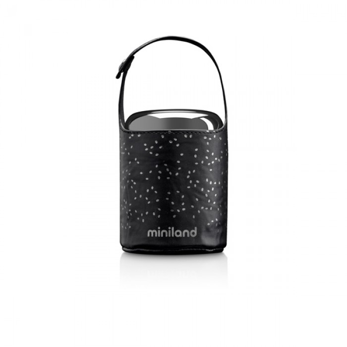 Термос Miniland з колекції Deluxe підходить для будь-якого виду їжі, будь то каша, суп або пюре і володіє високою тепловою стійкістю і ефективністю завдяки подвійним сталевим стінкам, ексклюзивному алюмінієвому шару і вакуумній камері. Завдяки цьому термос підтримує температуру холодних і гарячих страв більше 12 годин. Крім того, в комплект до термосу додається елегантна термосумка, яка забезпечує додатковий шар ізоляції і тим самим підтримує температуру вмісту в термосі ще довше. Термосумка має ручку, яка закривається на кнопку, що дозволяє з легкістю повісити її на коляску.