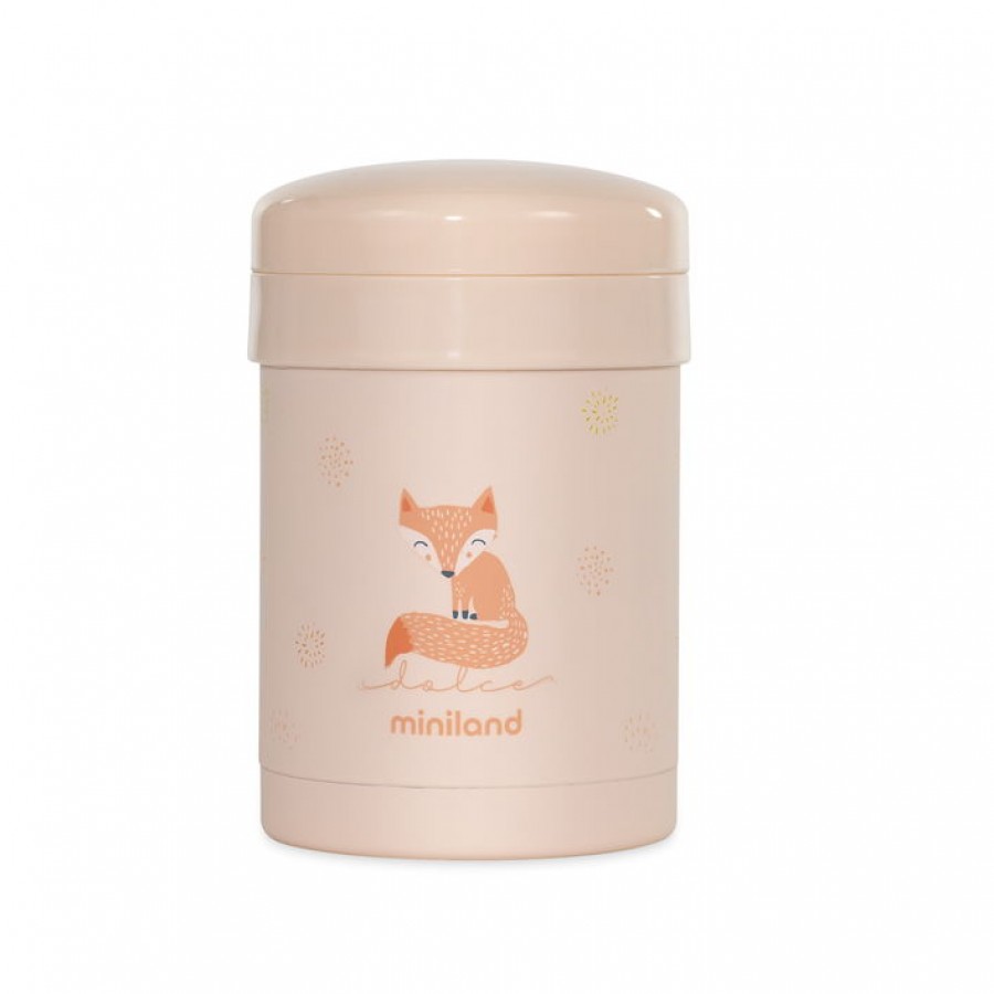 Харчовий термос із двома контейнерами Miniland Thermetic Candy має об'єм 700 мл та складається з двох внутрішніх контейнерів на 200 мл та 350 мл. Перший контейнер одягається в основну кришку термоса, а другий - може бути встановлений у саму колбу термоса і має окрему кришку. Такі контейнери підходять для всіх видів продуктів харчування як для перших страв, так і для твердої їжі. Їжу в них можна гріти у мікрохвильовій печі. При необхідності контейнери можна прибрати і використовувати весь об'єм термоса.