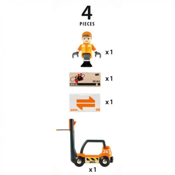 Підніміть, поверніть та доставте. Незалежно від того, що це за товари, навантажувач для залізниці впорається зі своїм завданням. Спеціальне магнітне кріплення у вилці аксесуара примагнітить усі вантажі з міста BRIO, де є магнітна позначка. Вгору або вниз просто натискайте на спеціальну кнопку на навантажувачі і контролюйте висоту підняття вантажу. Підвезіть вагон до бажаного поїзда і він самостійно примагнітиться. Вирушайте у подорож з новим набором. Тепер можна фантазувати ще більше ігрових сюжетів у місті BRIO. Шведська якість помітна у кожній деталі.